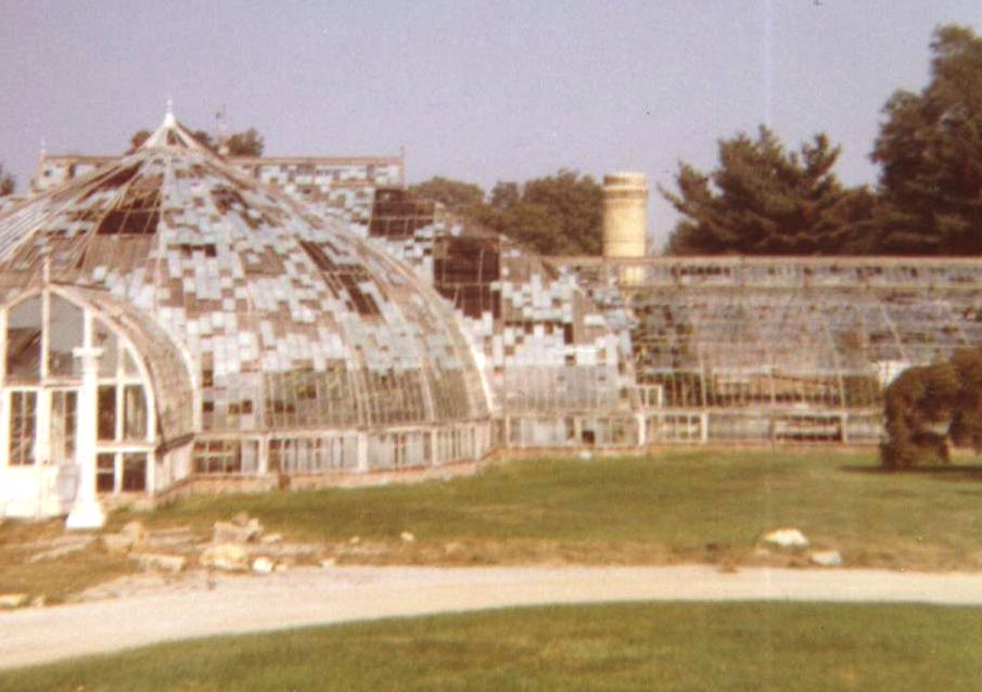 The greenhouse at the Jay Gould estate, Lyndhurst in Tarrytown, New York was at one time considered the largest and best equipped greenhouse in America. It's predecessor was even more fantastic with a towering spire. The first greenhouse burned to the ground and was replaced by this one. Designed by Lord & Burnham, the greenhouse specialist of the "Gilded Age", it housed one of the best orchid collections in the United States. Jay Gould who owned Lyndhurst from the 1880s was a notorious Robber Baron and was not welcome in, " Society". But when he was not causing financial turmoil on Wall Street, he puttered in his rose garden and greenhouse. One woman at the time is to have said, "Surely a man cannot be altogether bad who is a friend of the roses" The greenhouse was maintained in its glory up until about the 1940s when Anna Gould, the Duchess de Talleyrand , returned from France and to Lyndhurst. In 1945 she sold off the famous orchid collection. Anna Gould died in 1961 and willed Lyndhurst to the National Trust for Historic Preservation. The Trust opened the property to the public shortly after Anna's death and has been restoring the estate ever since. The greenhouse is stabilized and will hopefully be restored to its former glory someday.